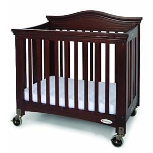 Foundations Royale Compact, Fixed Side, Folding Crib 1131852 (Antique Cherry). The Royale crib blends safety, convenience, functionality and style. Never have children traveled so well. Compact size, folding crib having a lifetime design includes 3'' foam Professional Series mattress which offers superior comfort and is antimicrobial. "Through the doorway sizing'' fits through standard doorways in fully assembled position for easy movement. Innovative hinges have a very unique two point pivot that keeps hinge flush with crib to prevent child's clothing or bedding from getting caught and allows crib to fold without difficulty for storage. Sleeping surface is 24'' X 38''. Crib is for sale in Antique Cherry (model 1131852). Crib features 4'' non-marking, ultra-quiet casters that will maneuver any surface to satisfy the demands of constant use. Crib is constructed from solid wood and includes a limited 1 year warranty. JPMA certified. Foundations uses only wood certified to having been harvested with safe and responsible forestry practices and many types of products comply using the PEFC certification seal. Crib create dimensions: 43'' High X 26.7'' Wide X 42.5'' Long. All 2011 Foundations' cribs are independently certified from the Juvenile Products Manufacturers' Association (JPMA) which they meet all applicable mandatory and voluntary standards published from the CPSC, ASTM and JPMA which includes 16CFR 1220 for compact cribs and 16CFR 1219 for full sized cribs.